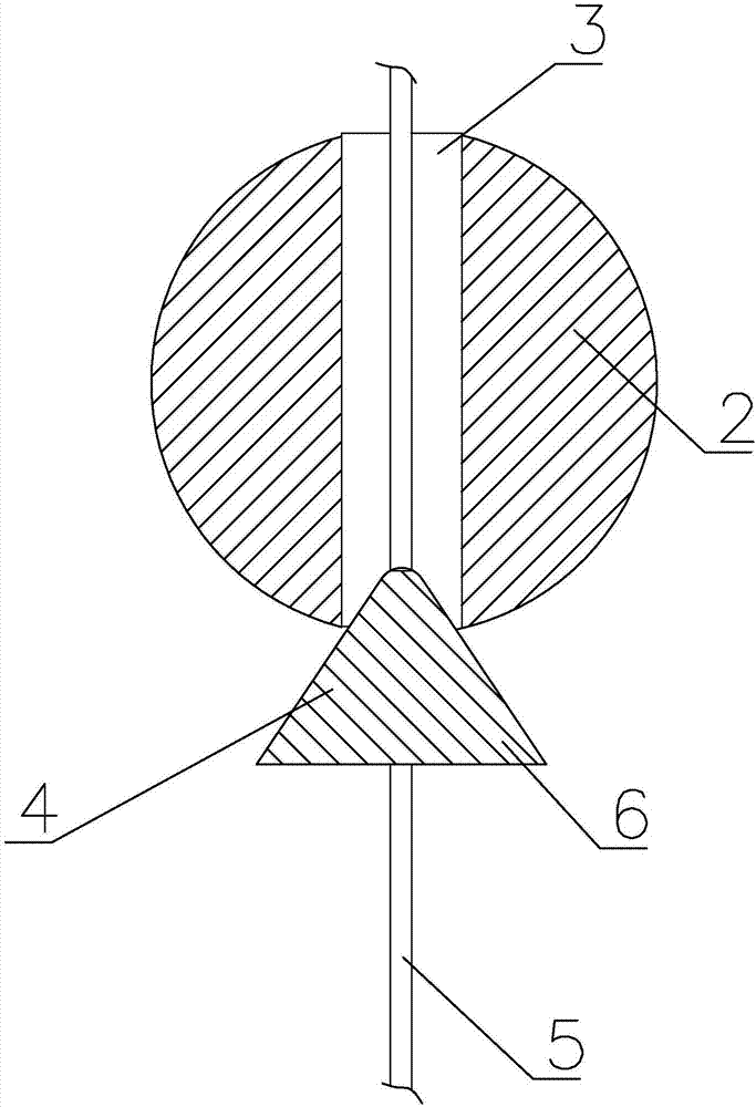 所述擋(dang)體6呈錐形結構設(shè)置,當繩索5受力作(zuo)用時,錐形結構設(she)置🧑🏽‍🤝‍🧑🏻便于擋體6的卡(ka)于對應通孔3内,起(qǐ)到導向作🙇‍♀️用,使用(yong)效🔱果好。