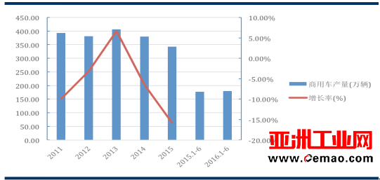 2011 年至 2016 年(nián) 1-6 月商用車産量及(ji)增長率情況如下(xià):