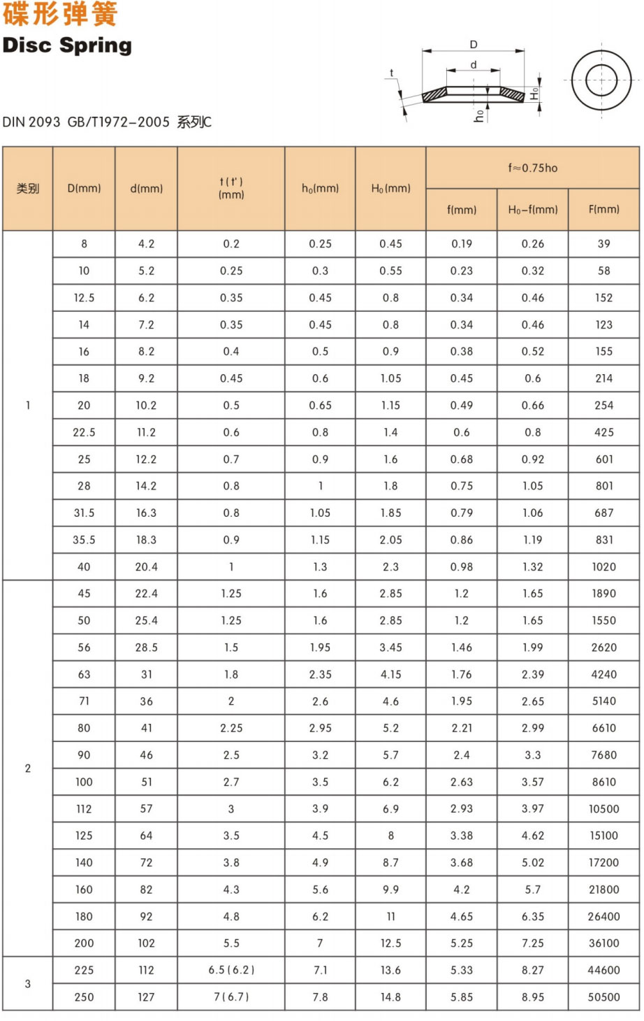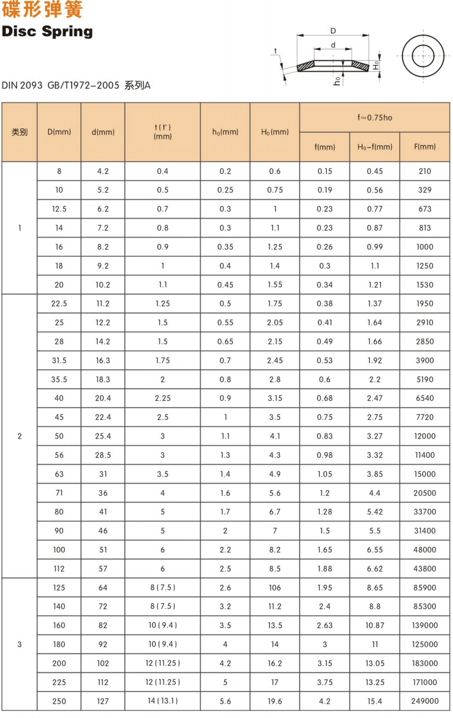 ●如上圖所示,當(dang)碟形彈簧的行(háng)程大于0.75ho其負荷(he)增加已有限,但(dan)對碟簧使用壽(shou)命影響很大因(yin)此,碟簧使用行(hang)程以不超過S=0.75ho為(wei)佳